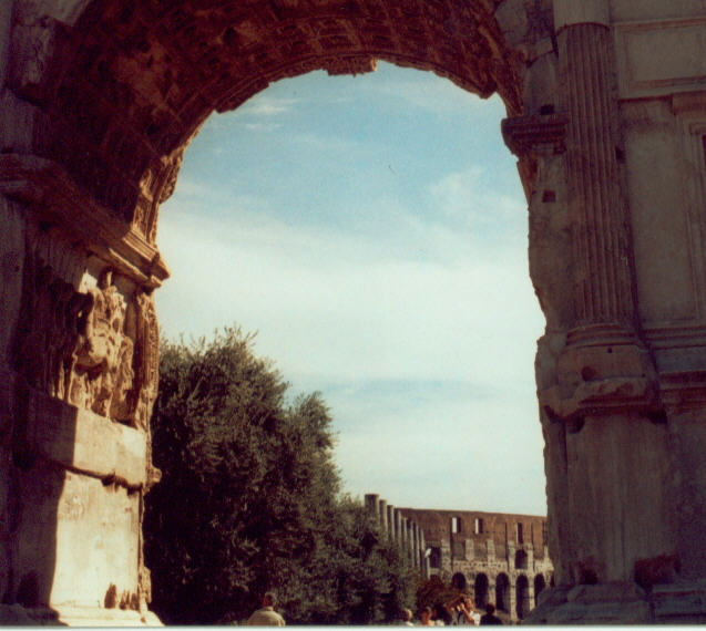 Photograph of the Arch of Titus at Rome Overlooking the Coliseum