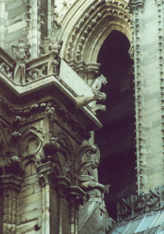 Photograph of a Cluster of Gargoyles Behind the Front Tower at Notre Dame